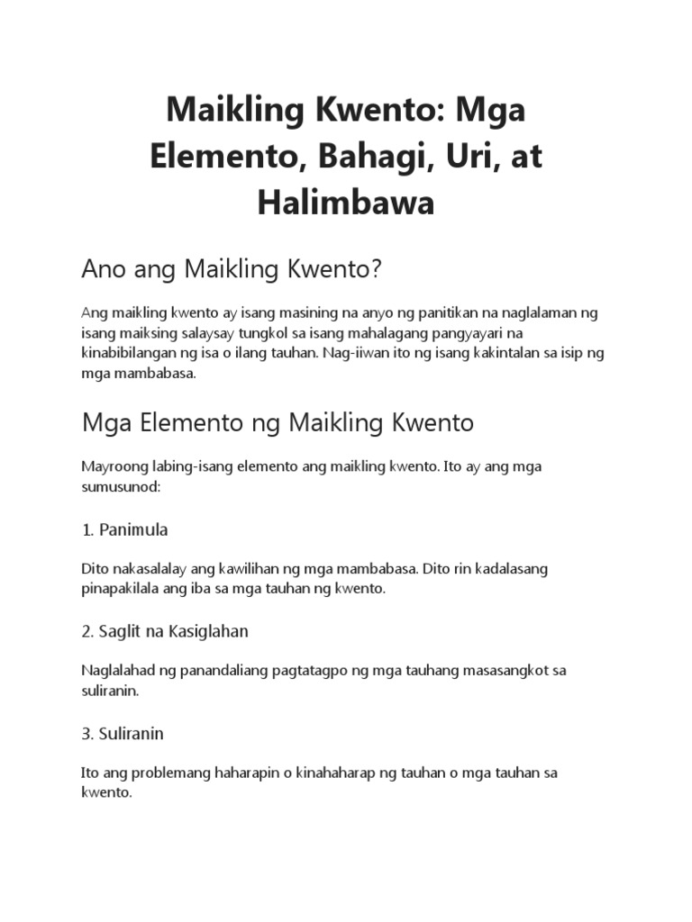 Mga Halimbawa Ng Maikling Kwento Pdf