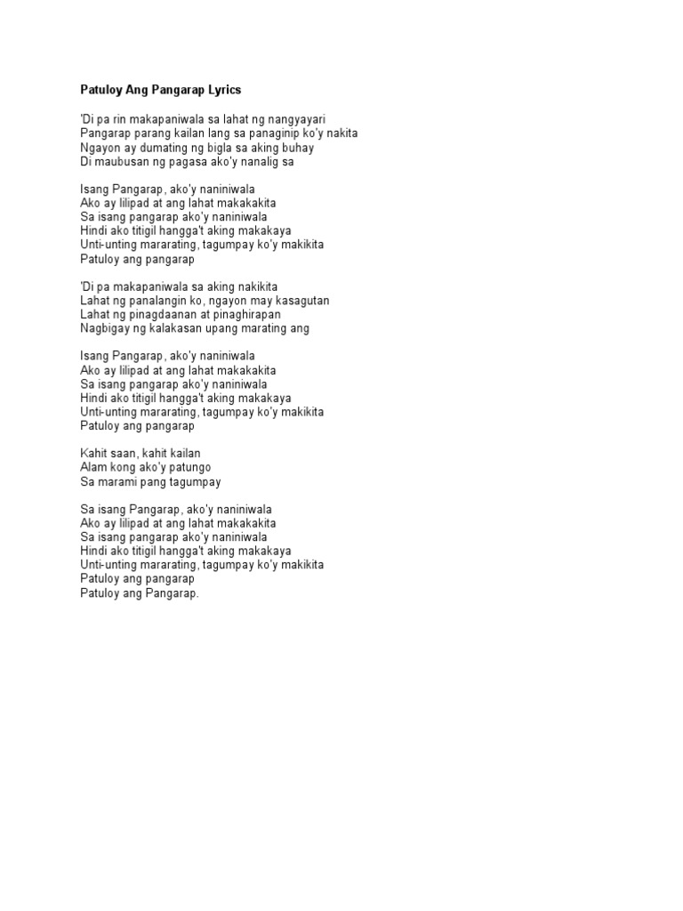 Patuloy Ang Pangarap Lyrics Pdf